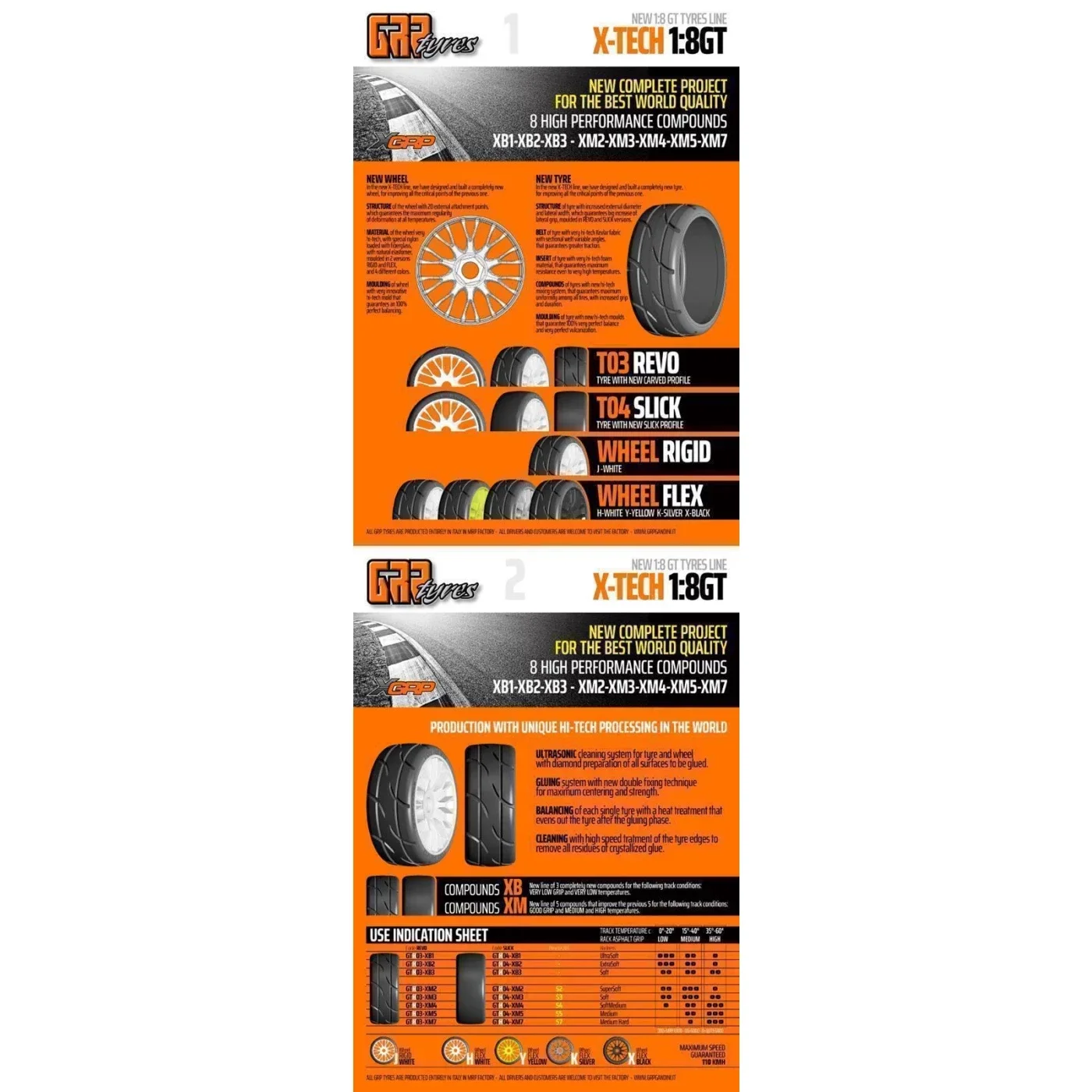 PNEU 1/8e GRP Gandini Pneu 1 :8 GT & Rally Game Profile XM2 Jante noire MEDIUM collée X2