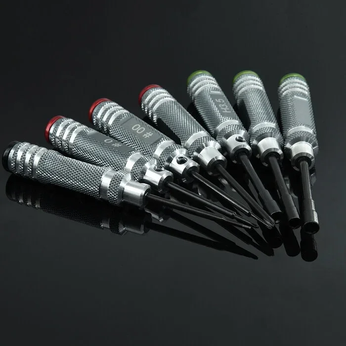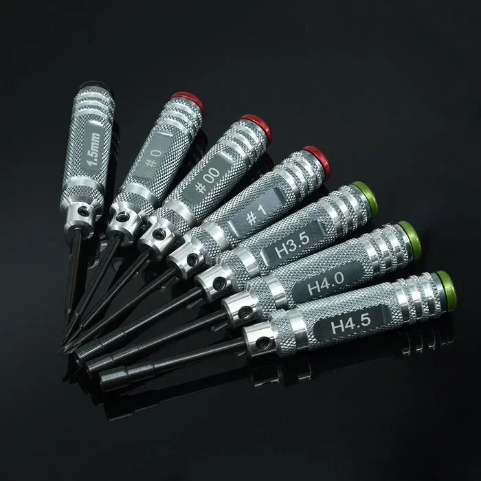 Poignée de mini outil RNA avec couvercle coloré Ensemble de 7 pièces Hex 1.5, Philips #0,#00, #1, Boîte 3,5, 4,0, 4,5 mm