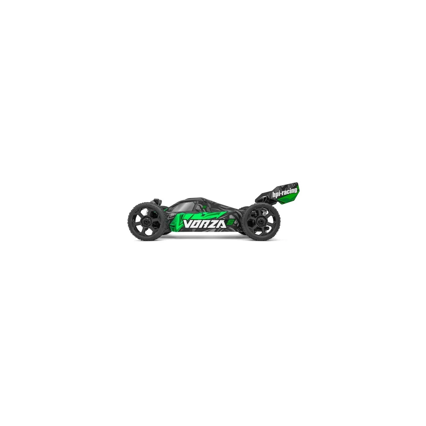 Sous la carrosserie, chaque nouveau buggy Vorza dispose d’une tonne de caractéristiques de durabilité et de réglage qui font de chacun un plaisir à conduire avec une voie de mise à niveau claire vers la spécification « S » et au-delà ! Le Vorza reprend le design gagnant de la course et le mélange avec la technologie HPI FLUX pour vous offrir une vitesse impressionnante ! Il s’agit d’un buggy prêt à rouler (RTR) que vous pouvez emmener faire des sauts en BMX pour des sensations fortes de big air, puis vous pouvez l’emmener directement sur n’importe quelle piste pour une action de course de haut niveau - il fera tourner les têtes et étonnera vos amis !