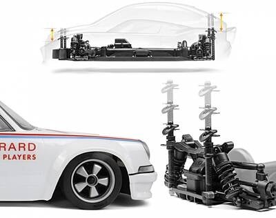 Sous le capot, cette version à l'échelle 1/10 repose sur le châssis éprouvé de la voiture de tourisme HPI Racing Sport 3. Elle est équipée d'une transmission intégrale permanente par arbre, entièrement étanche, d'une électronique résistante à l'eau, d'un système radio 2,4 GHz, d'une suspension à double triangulation indépendante et d'amortisseurs hydrauliques réglables, ce qui la rend prête à affronter toutes les conditions. Elle offre une puissance largement suffisante pour des dérapages contrôlés et une vitesse fulgurante d'une simple pression sur la gâchette.