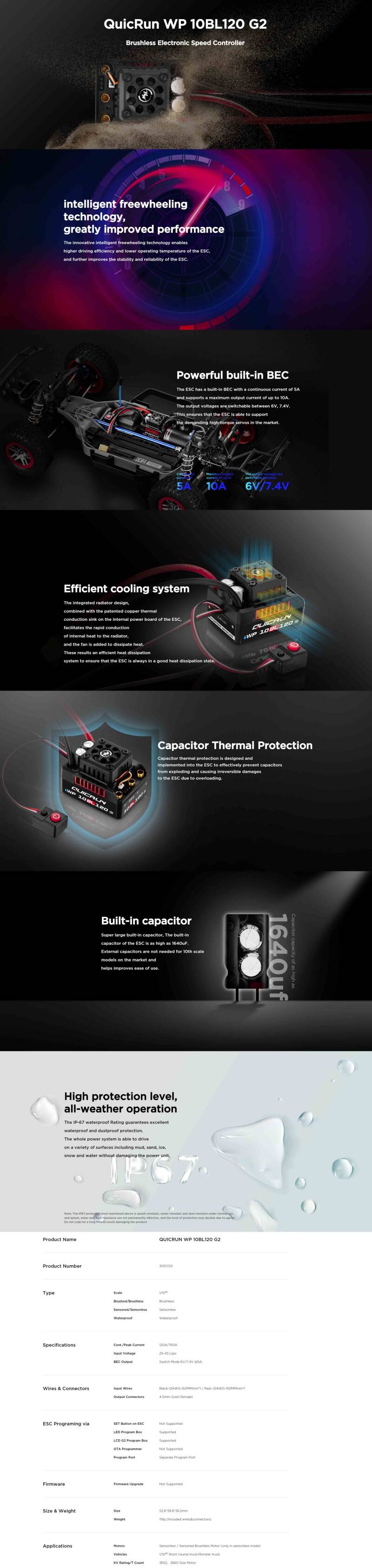 Hobbywing QuicRun 10BL120 G2 3660SL 3700KV Power System Combo